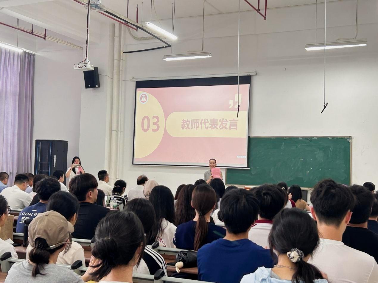 大会伊始,主持人逐一介绍到场嘉宾。从学院领导到专业骨干教师,这些“领航者”的亮相,让新生们直观感受到管理学院的专业底蕴与人文温度,为整场大会奠定了亲切而庄重的基调。