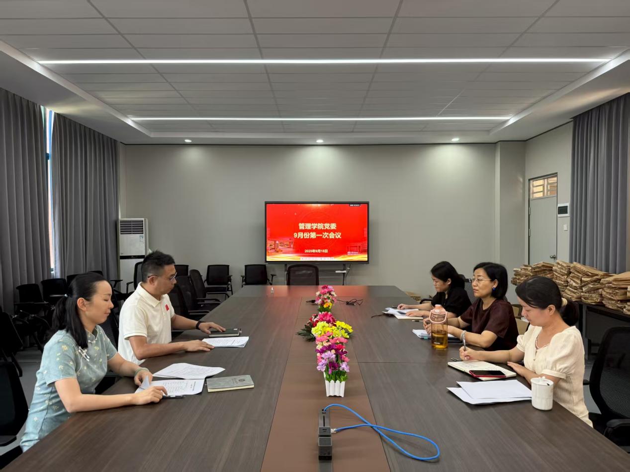 管理学院党委召开 9 月第一次会议暨教育建设与八项规定专题学习会