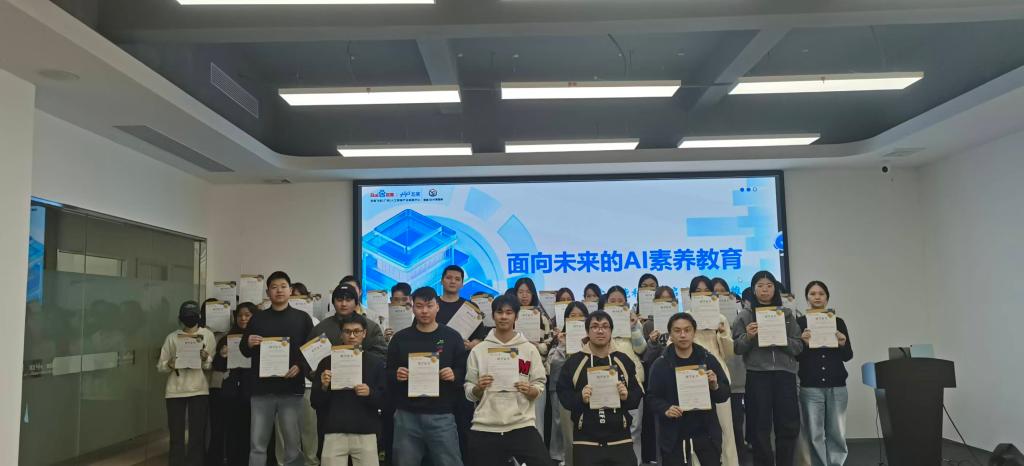 专项实操体验后为参与本次参观实践的全体同学颁发了证书,以此肯定同学们在本次活动中的参与度与学习成果。此次走进百度飞桨(广州)中心的参观实践,是广州华商学院管理学院深化产教融合、拓展学生跨领域能力的重要尝试。人工智能技术与工具的沉浸式体验,有效帮助学生打破专业认知边界,建立对数字化能力普适价值的清晰认知,为学院培养兼具专业素养与综合数字化能力的复合型人才提供了有力的实践支撑。