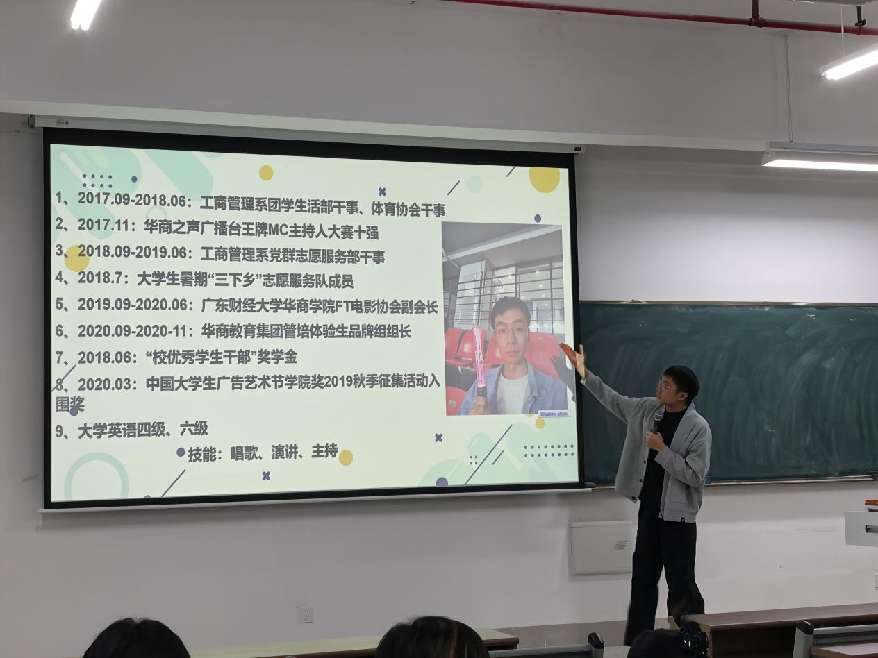梁远钊学长是管理学院的优秀学子,在校期间便凭借积极进取的姿态收获了丰富的成长阅历。他曾担任工商管理系团学生活部干事、体育协会干事、FT电影协会副会长等职务,深度参与校园文化建设;同时活跃于各类实践与竞赛场景,既是大学生暑期“三下乡”志愿服务队的热心成员,也是华商之声广播台王牌MC主持人大赛十强选手。凭借出色的综合表现,他斩获“校优秀学生干部”奖学金,更以专业实力入围中国大学生广告艺术节学院奖。此次重返母校宣讲,正是他以实际行动为二十周年校庆献礼,将成长经验回馈给学弟学妹。