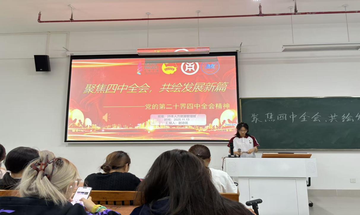 在全面建设社会主义现代化国家的新征程上,党的二十届四中全会为青年成长指明了方向、注入了力量。为推动全会精神在青年中入脑入心,引导团员青年将个人理想融入国家发展大局,管理学院团委组织部于11月11日-18日在广州、肇庆两校区开展了以“党的二十届四中全会精神”为主题的团组织生活活动,让我们一同回顾这场充满思想碰撞与青春活力的成长之旅!