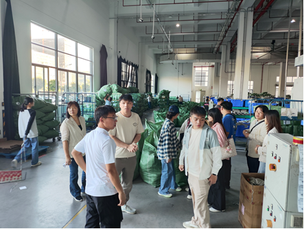 2025年10月24日下午14:00,管理学院党委书记、副院长袁仕海副教授、物流管理专业负责人刘连花副教授、工商管理系教师代表陈岫副教授、吴彬彬老师、崔运玲老师以及21名管院学子齐聚三福商品中心,举办了一场内容丰富、意义深远的订单班宣讲与调研考察活动。三福人事部蔡东辽经理、物流综合后勤部强赛英经理、广州仓黄志强经理、电商仓尹俊文经理、物流规划部沙德军经理以及招聘专员李美琼等企业领导热情接待了管理学院师生一行,共同出席了本次交流会议。