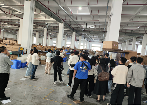 最后,同学们在三福师兄师姐的带领下,实地参观了海外仓、电商仓、实习宿舍和办公区域,深度体验了三福的实际运作流程,并与招聘团队进行了面试交流。